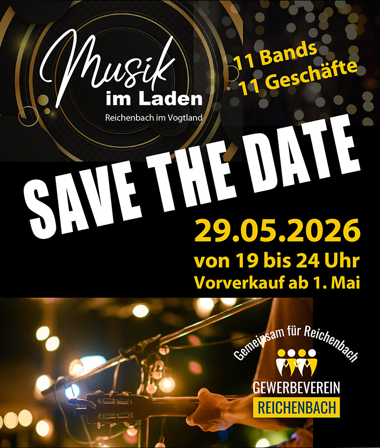 11 Geschäfte in der Reichenbacher Innenstadt verwandeln sich am 29.5.26 in coole Partylocations und bieten einheimischen Künstlern eine Plattform für ihre Musik.